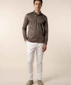 Long-sleeve polo crafted from luxurious interlock cotton for a refined, comfortable fit. Featuring a classic button collar, this polo is knitted from fine Egyptian cotton, offering an elegant drape and unparalleled softness. The extra-long staple and double-mercerized finish ensure a silky texture that endures with wear. A versatile essential for effortless layering throughout the year.