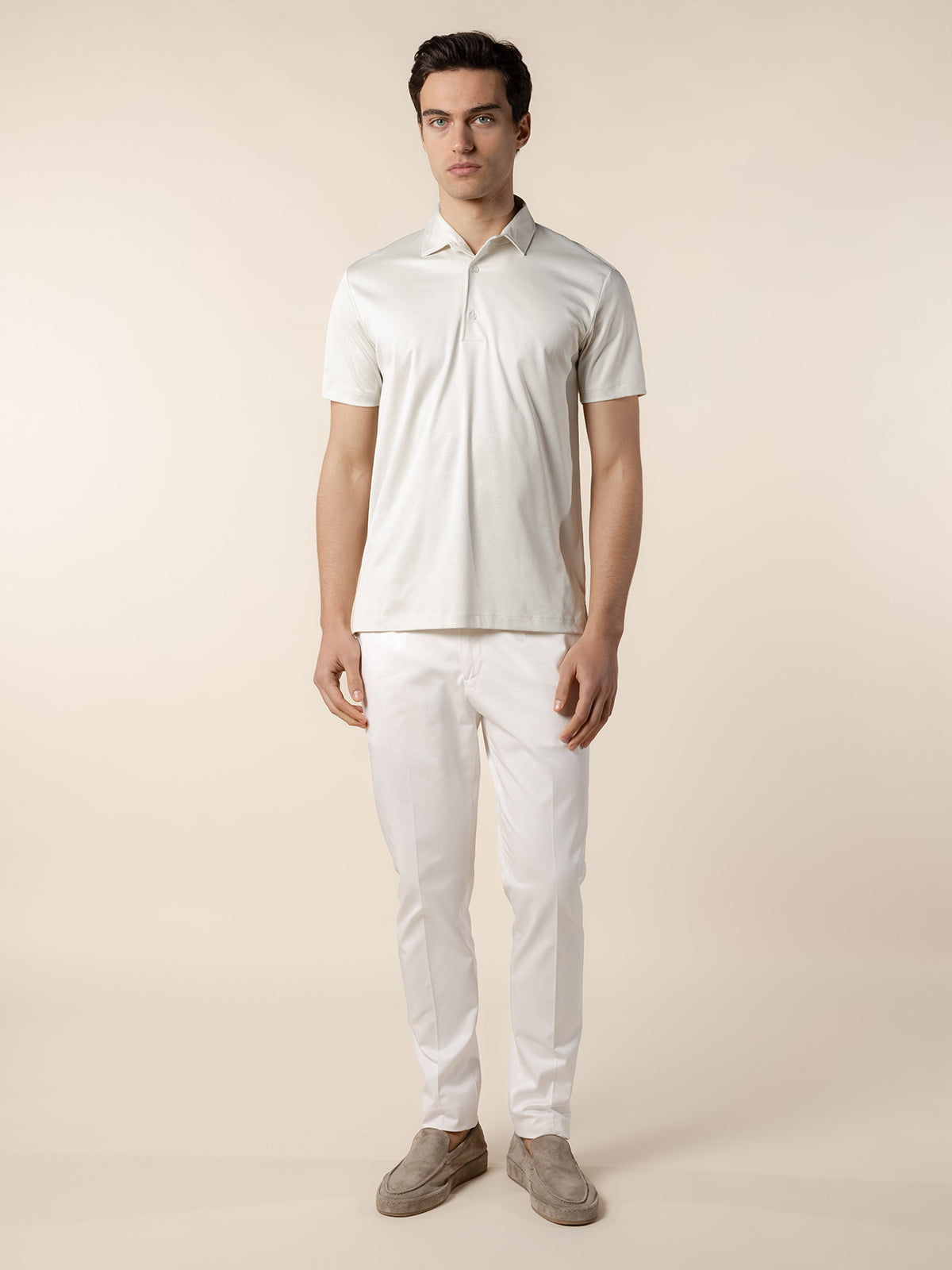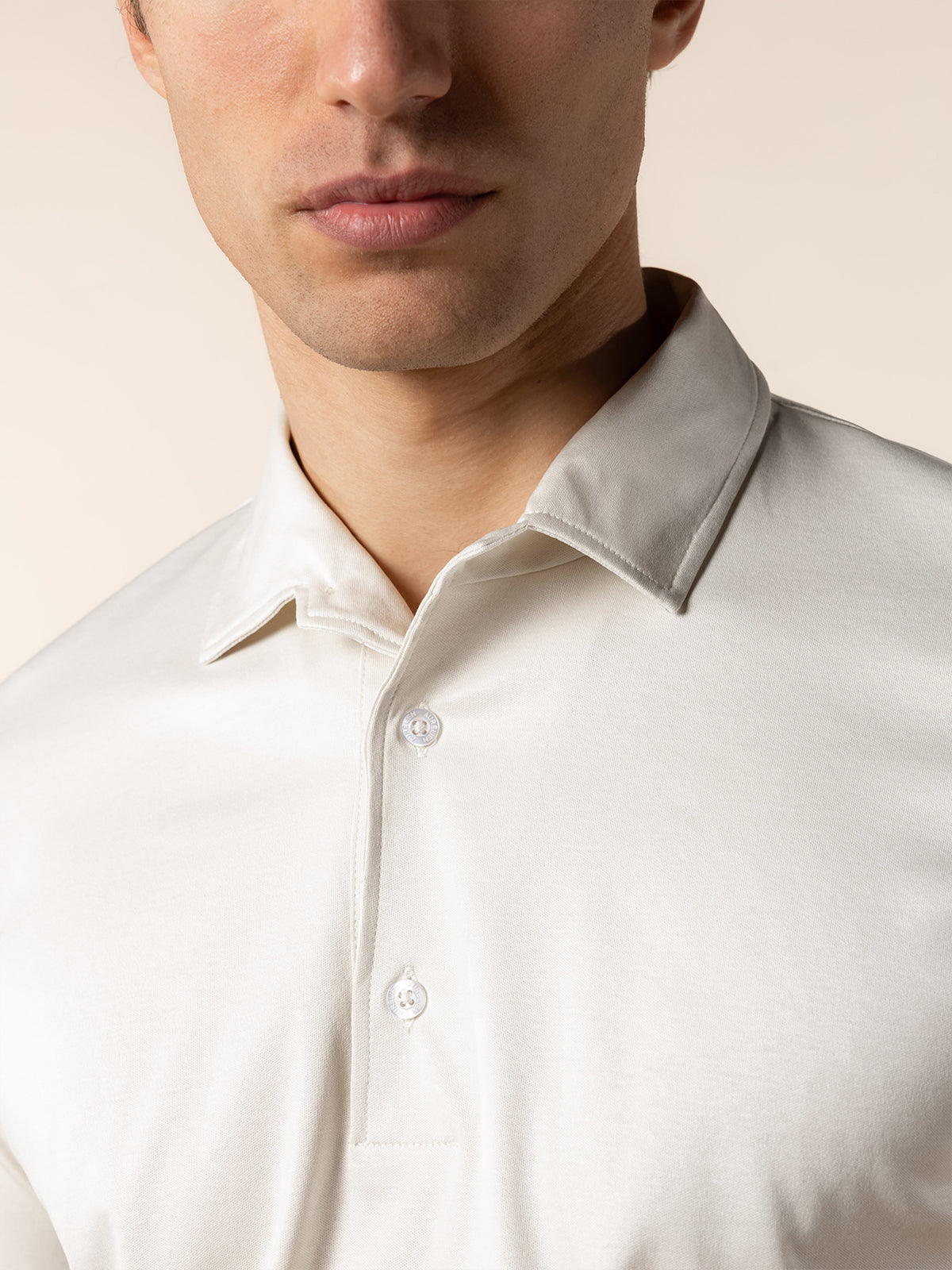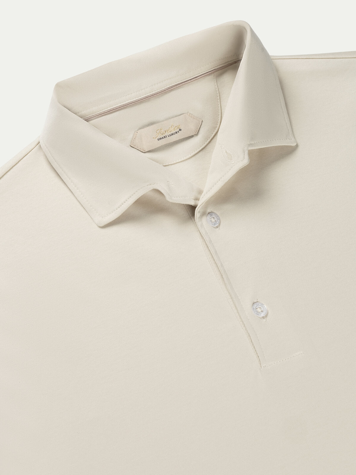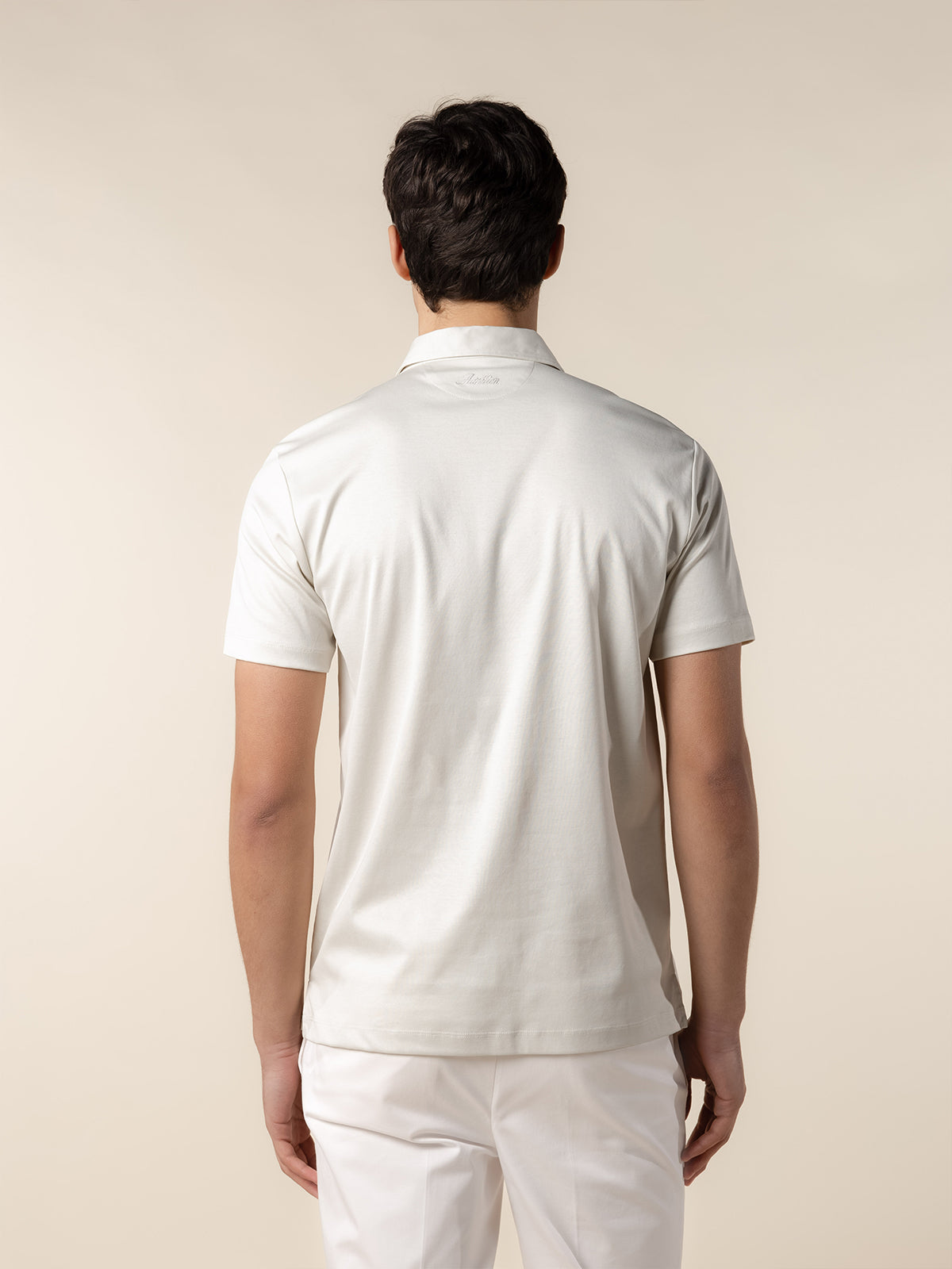 Short-sleeve polo crafted from premium interlock cotton for a sleek and comfortable fit. Designed with a classic button collar, this polo is made from fine Egyptian cotton, providing a smooth drape and luxurious softness. The extra-long staple and double-mercerized finish deliver a silky texture that retains its elegance over time. A timeless piece for refined, everyday style.