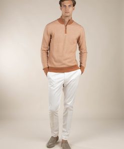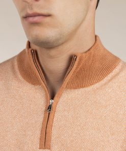 This sweater with zipper collar has been crafted from pure cashmere that’s known for its remarkably soft touch. The subtle jacquard knit provides a luxurious and distinctive touch. This item is sure to keep you warm on colder days.
