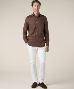 The Aurélien Seaside Shirt is a refined option for the warmer months. Made from breathable linen, it’s tailored with a spread collar with facings to ensure it stays in place when wearing it open. Perfect for both casual and evening wear during the holidays and for leisure time in the city.