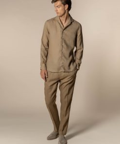 These Seaside Trousers are made from breathable linen and feature a comfortable drawstring waistband. Wear them with a lightweight polo shirt or loose button-down. These trousers are slim-fit and perfect for sunny days.