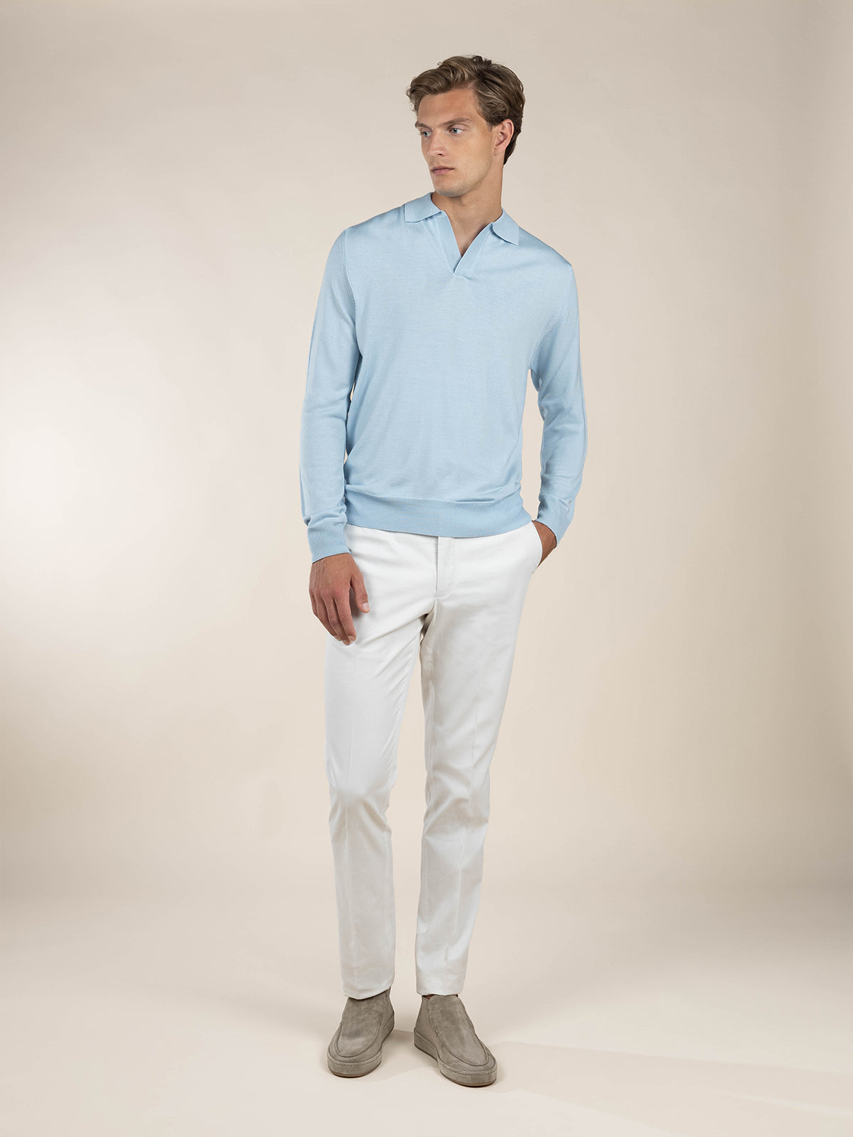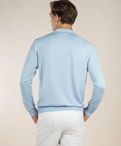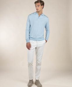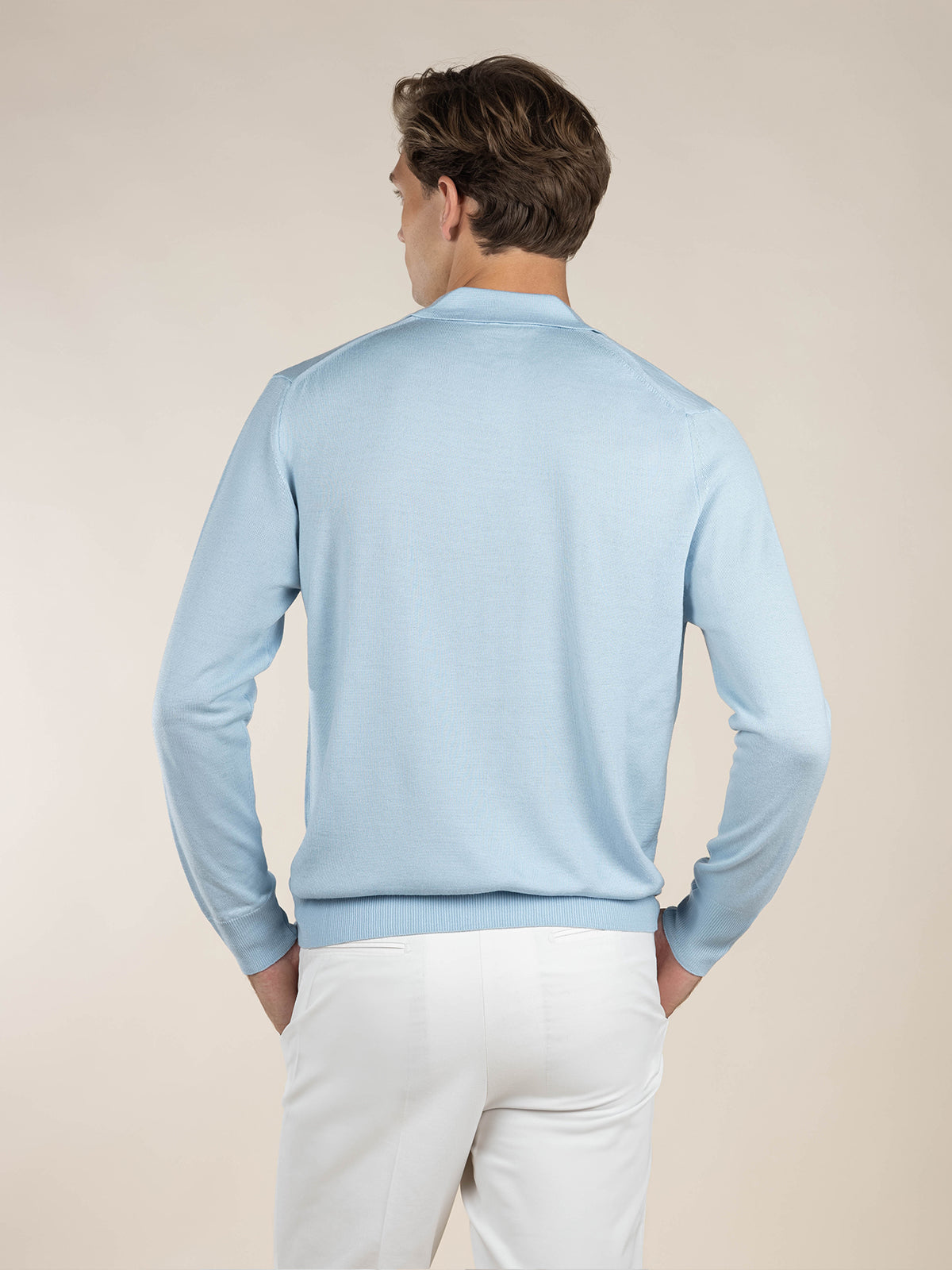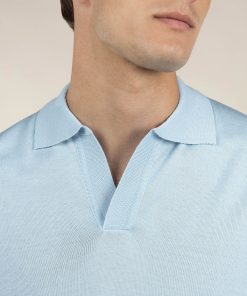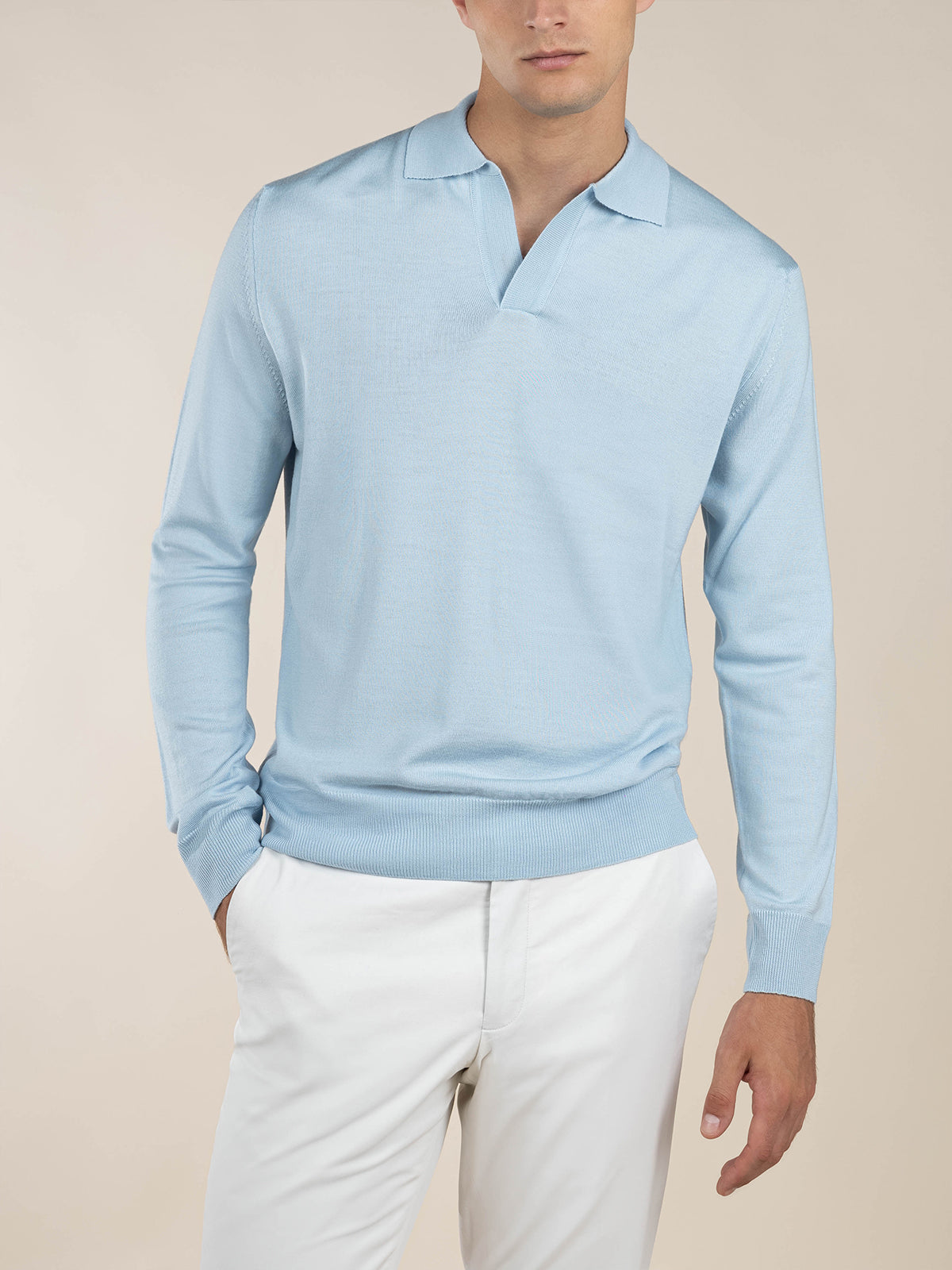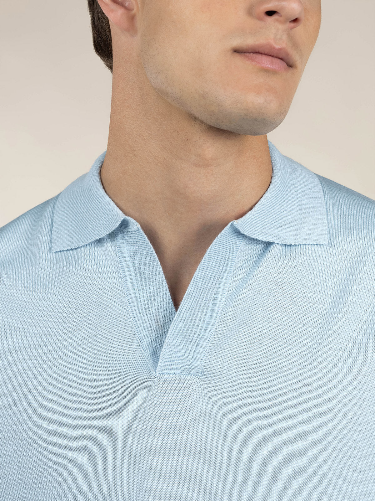 Aurélien Men’s Extrafine Merino Buttonless Polo Light Blue | Extrafine