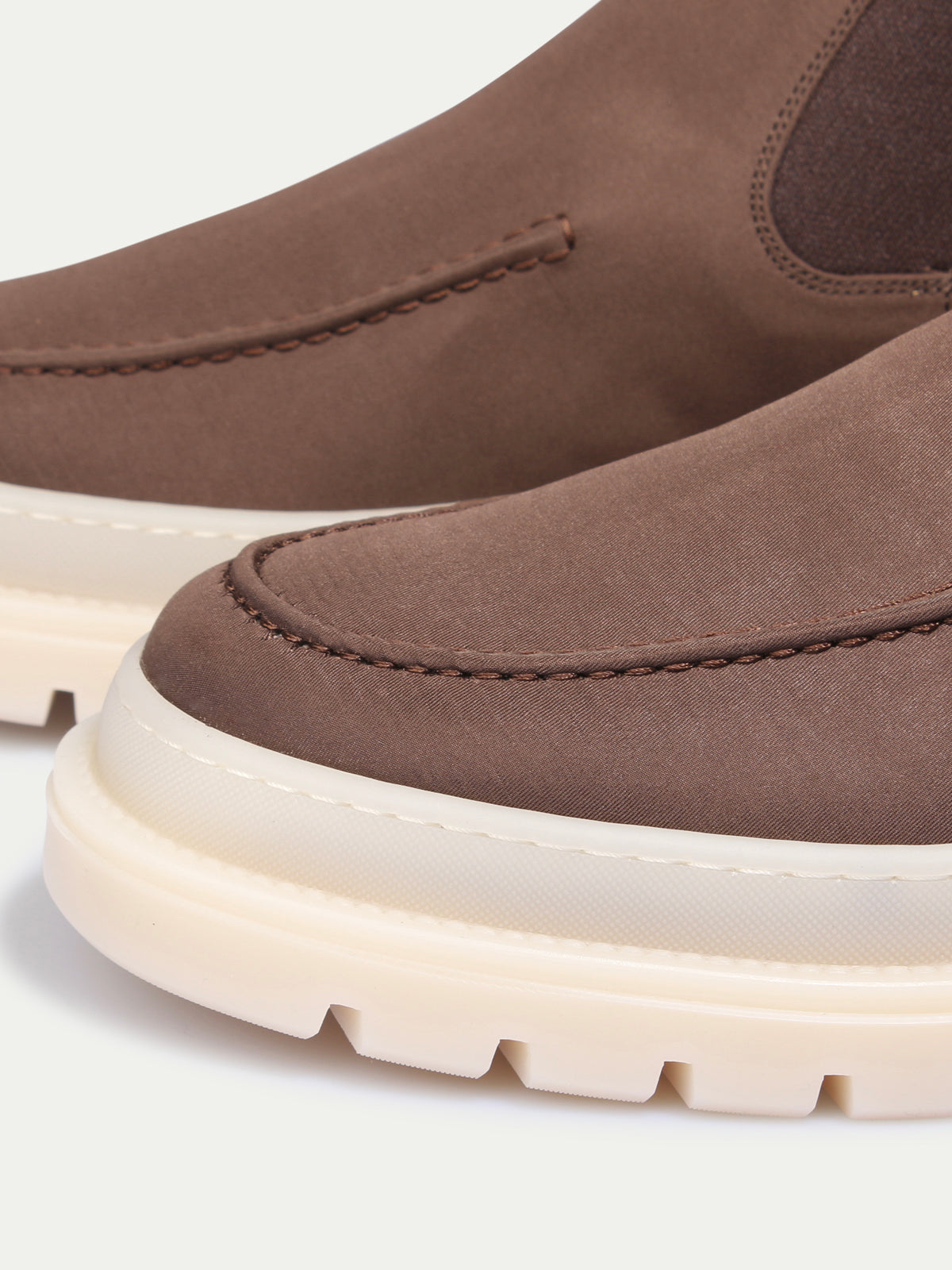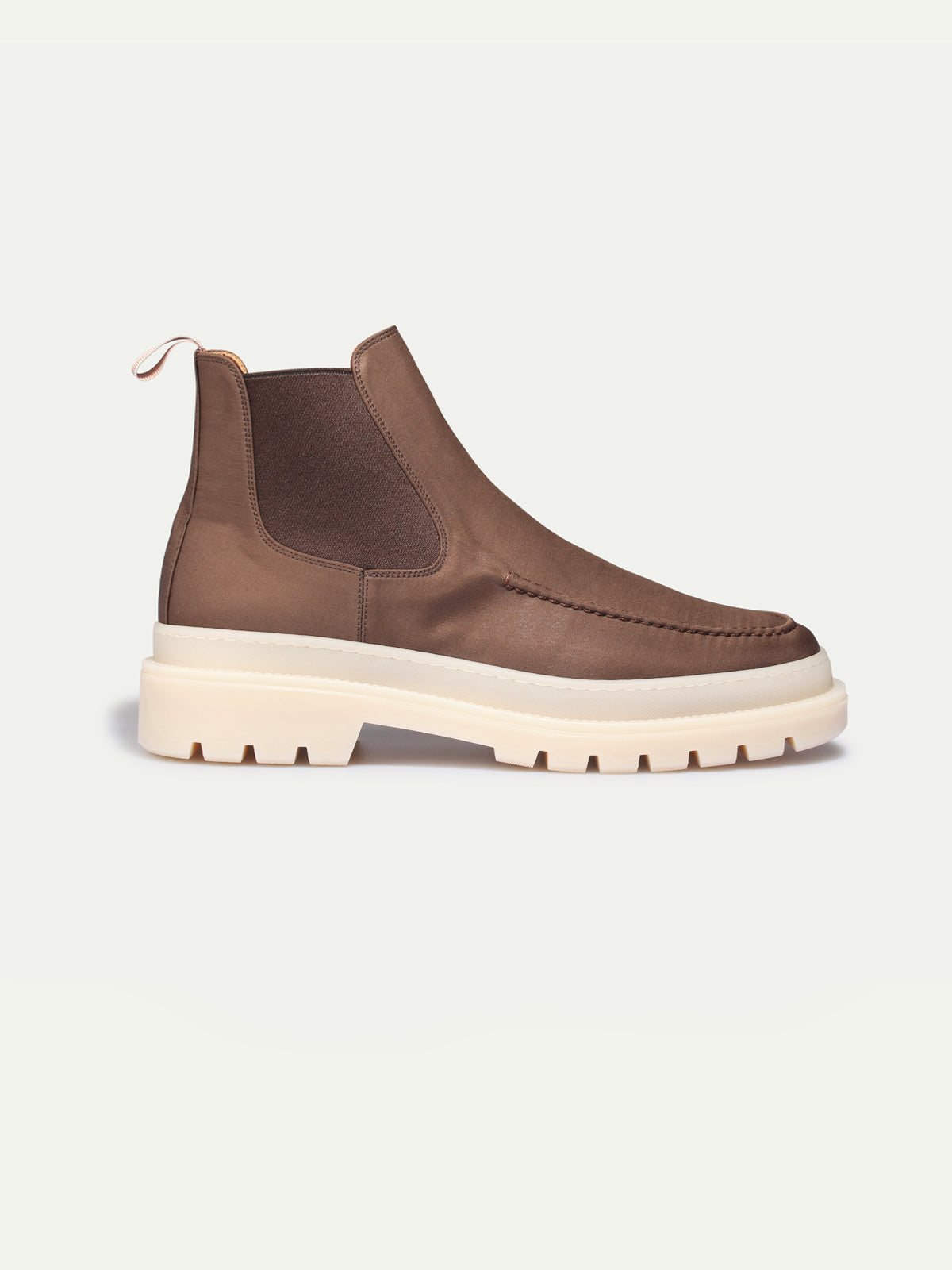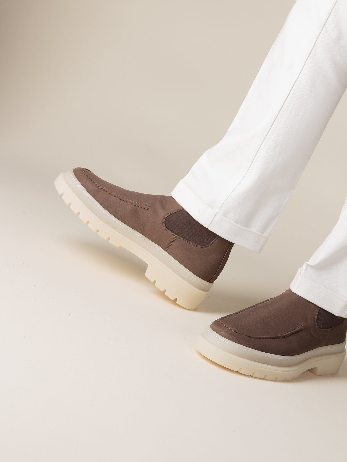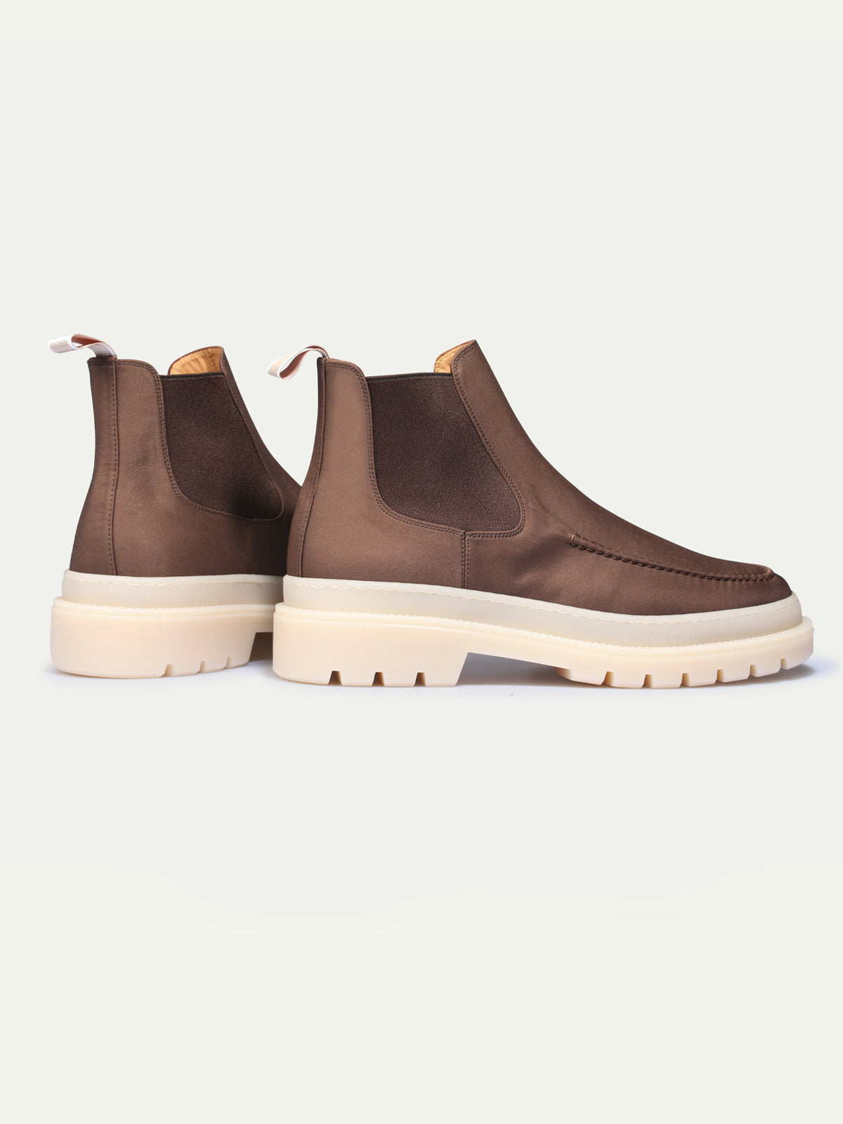 The Snow Chelsea Boots are made from a waterproof and easy to wash technical fabric. These boots are a fail-safe choice for frosty country walks or urban commutes. The thick natural rubber soles guarantee stability and resilience on any terrain. Perfect for hiking in the mountains.