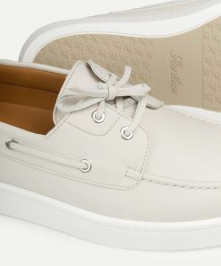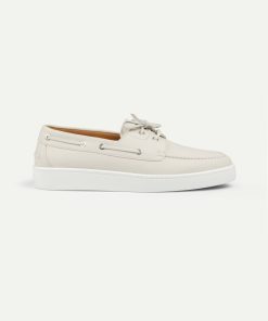 The Aurélien Boat Sneaker is a refined expression of coastal elegance. Crafted from supple grain leather with a deerskin-like touch, it evokes the quiet luxury of life by the sea, where the light is soft and time flows with ease. Lined in smooth leather and finished with durable rubber soles, it is designed for effortless movement and lasting comfort. Minimal in form, versatile in spirit, and made for sunlit escapes. This is joie-de-vivre, shaped into every step.