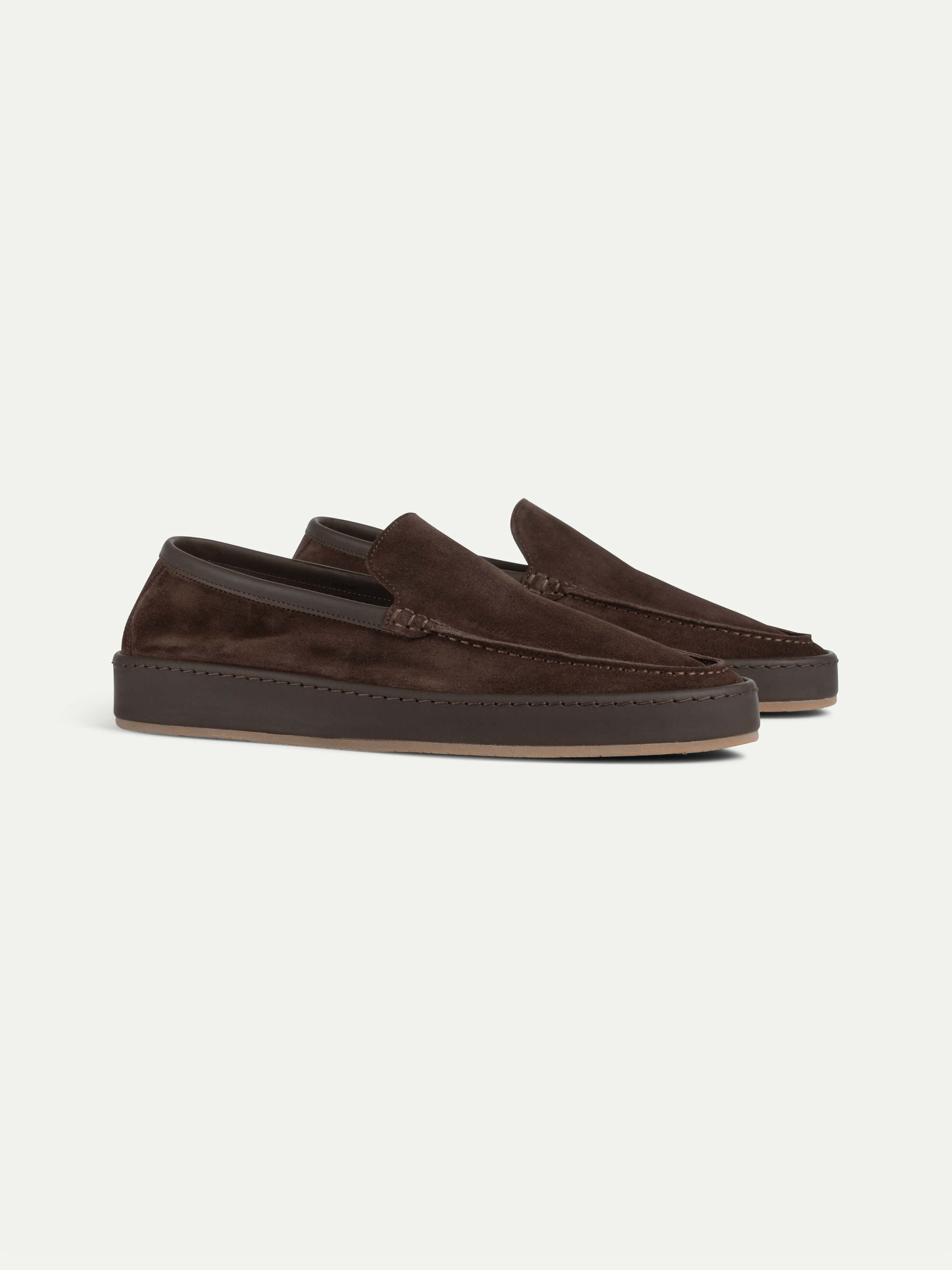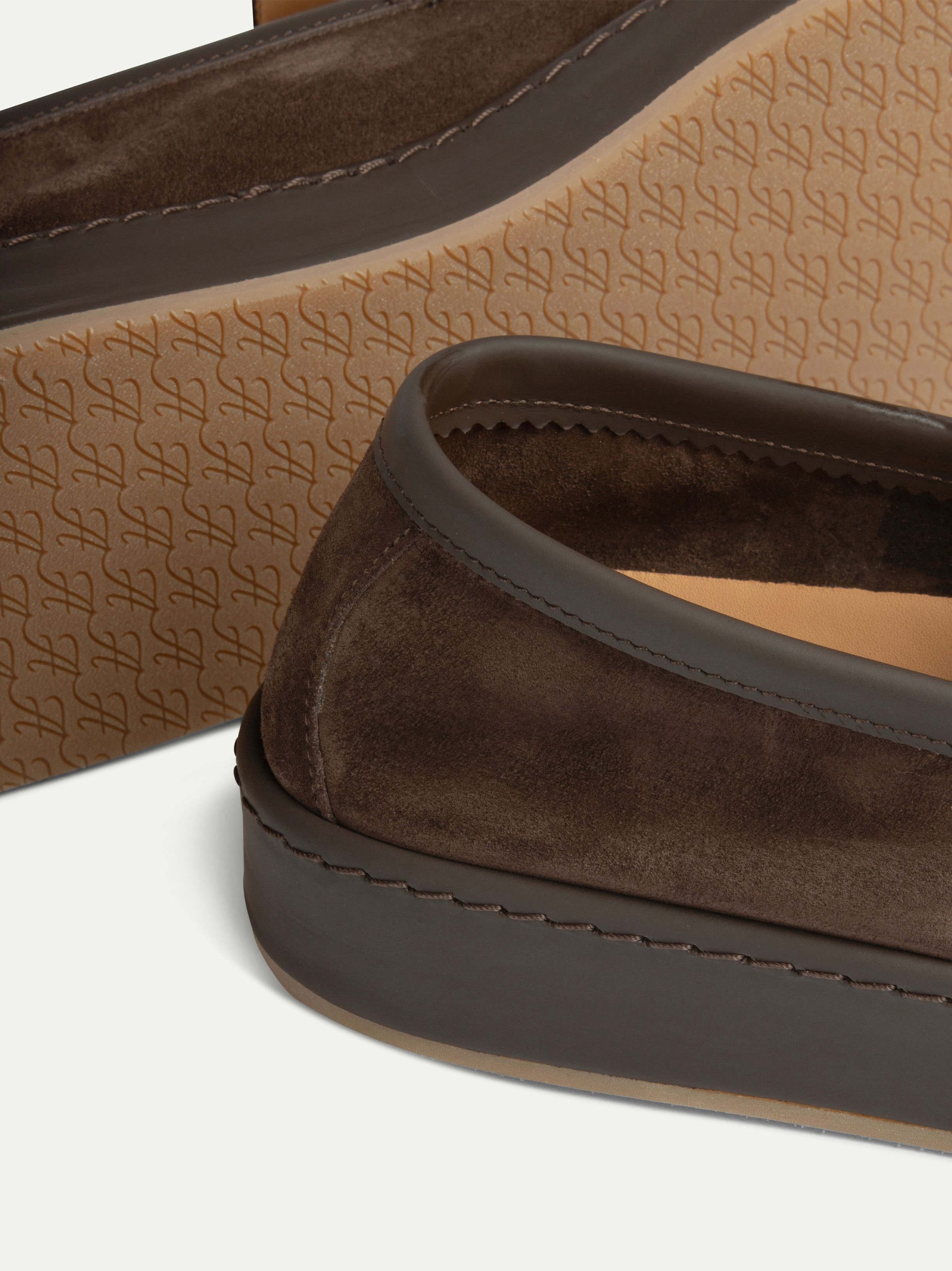 The Aurélien Voyager Loafer has been crafted from supple suede with smooth leather linings. The upper of the shoe is stitched to the midsole using a special technique. The result is a rubberised leather trimmed sole which flawlessly integrates into the design of the shoe. With its plush suede and meticulous construction the Voyager Loafer represents a contemporary approach to luxury.
