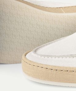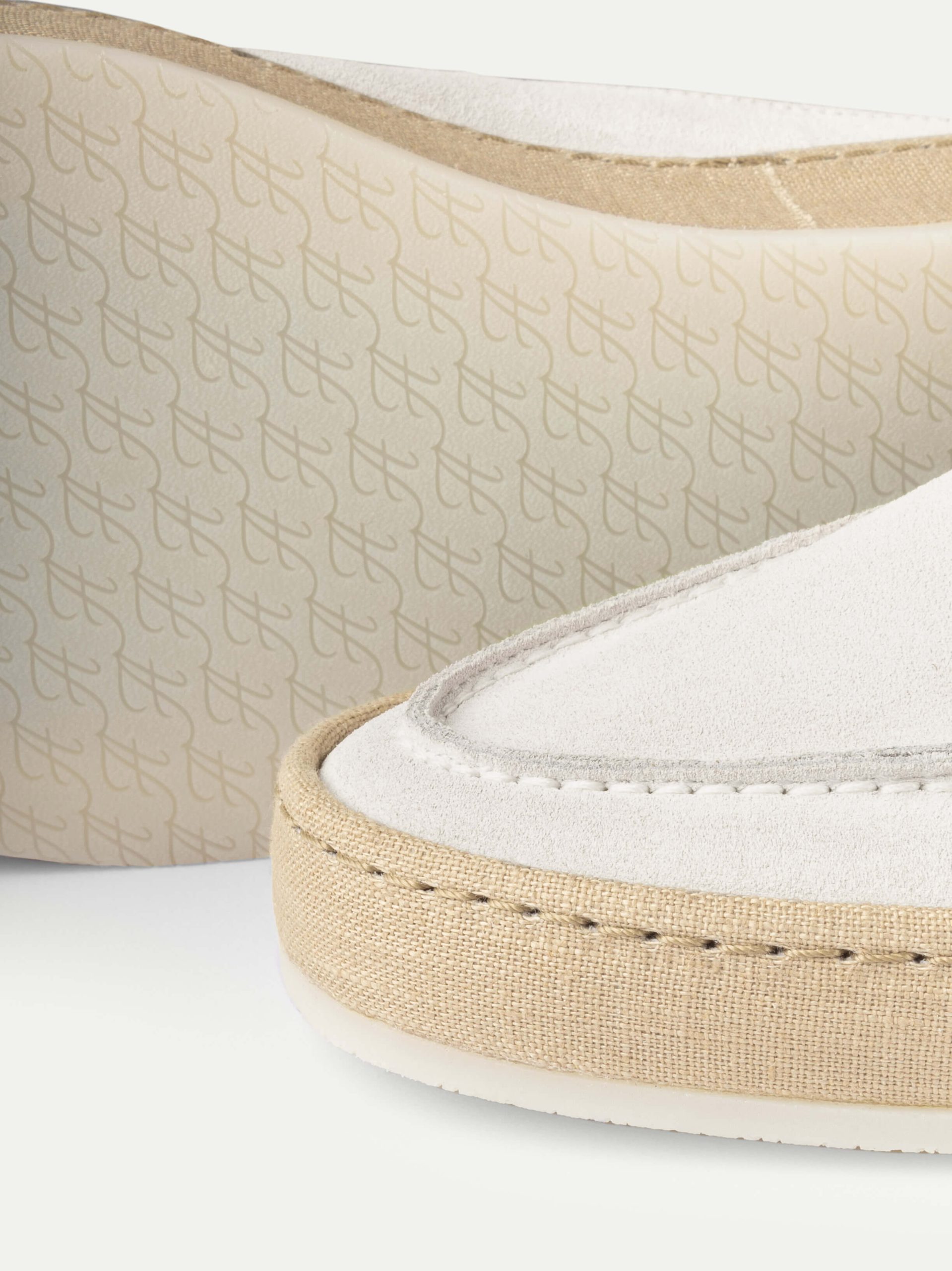 Our iconic Voyager Loafer is reimagined in a backless design with linen sole, expertly crafted from supple suede and luxuriously lined with smooth leather. Its unique construction and stitching technique create a linen-trimmed sole that blends seamlessly with the silhouette. An ideal companion for seaside strolls or days spent at the beach.