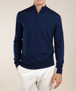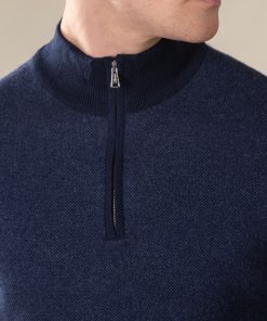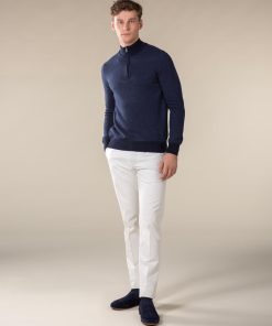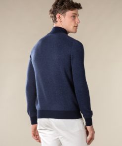 This sweater with zipper collar has been crafted from pure cashmere that’s known for its remarkably soft feel. The subtle jacquard knit provides a luxurious and distinctive touch. This item is sure to keep you warm on colder days.