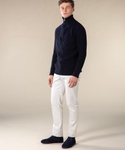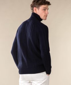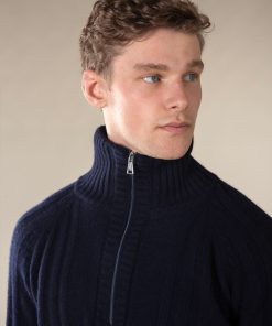This sweater has been knitted in Italy from a Cashmere and Extrafine Merino wool blend that’s known for its remarkably soft feel. The Wintertime Sweater is finished with a cosy zip-up funnel neck and an elegant cable motif. This item is sure to keep you warm on colder days.