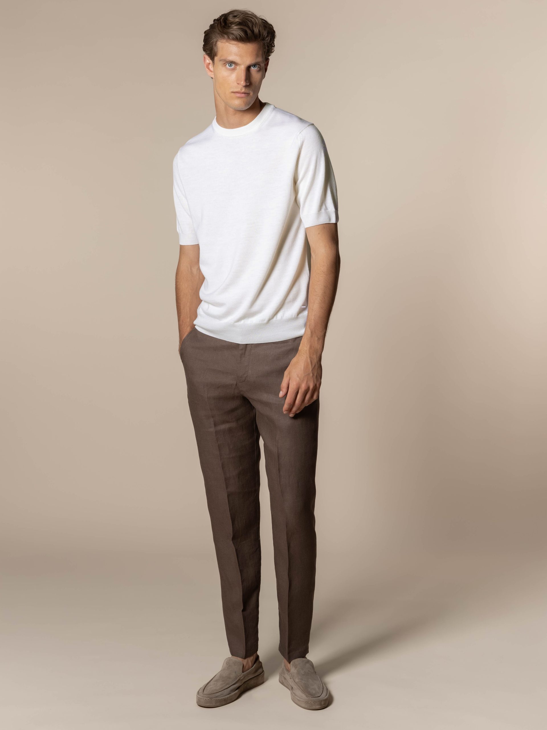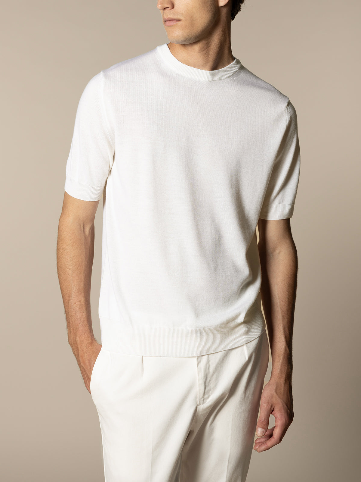 As shiny as silk, as soft as cashmere. This t-shirt is crafted in Italy from Cashwool®, an exceptionally fine fibre sourced from selected Merino sheep bred in Australia, only 19.5 microns in diameter. Ideal for refined leisure time looks.